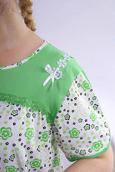 Подробное описание: Ночная рубашка женская белая с зеленым код п877