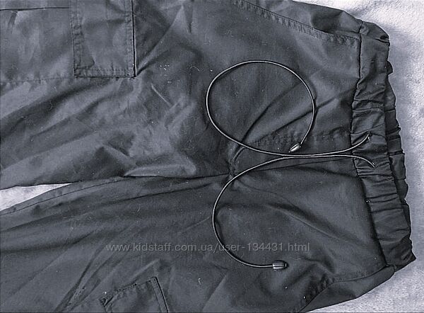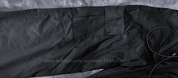 Пояс регулюється шнурком , дві бічні кишені , 2 великі накладні кишені, низштанів регулюється кулісою, яку можна затягнути.