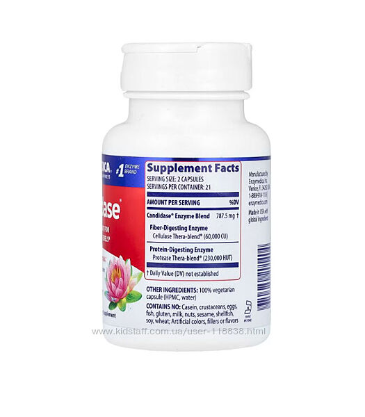Подробное описание: Enzymedica, Candidase, Кандидаза, 42 капсулы