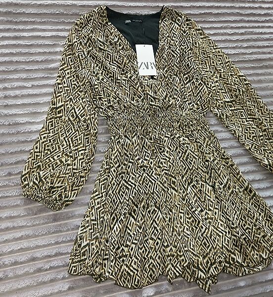 Подробное описание: Сукня S-M Zara нова колекція шифонова коротка жіноча бежева чорна платье