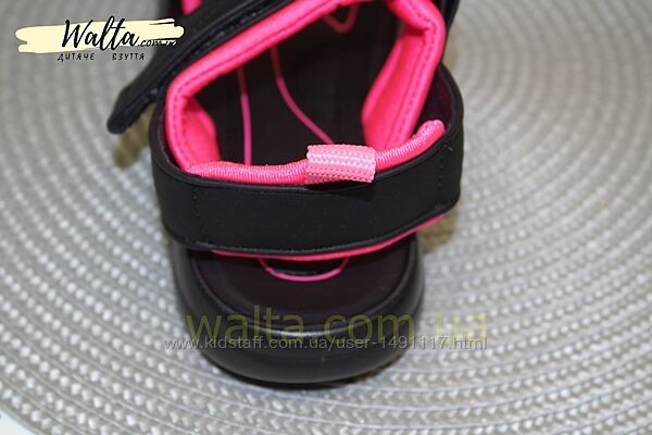 Босоніжки оригінальні дівчинці від фірми Apawwa (Румунія). На 2 липучках. Модель нового сезону. Легкі та зручні, мякенькі. Підошва частково гнеться. Устілка добре миється. Колір чорний з малиновим (фуксія). Присутній запах фабричний, в процесі носки вивітрюється.