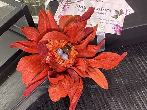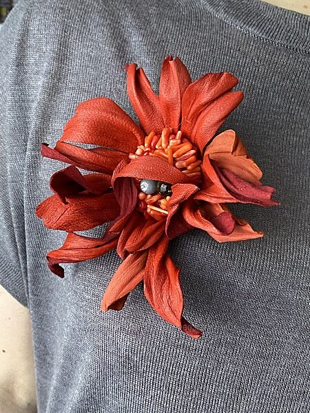 Брошь-цветок выполнен из натуральной кожи, средина из кораллов.Размер броши по крайним точкам 10-10 см. Отлично дополнит ваш образ. Брошь очень легкая.Другие объявления продавца