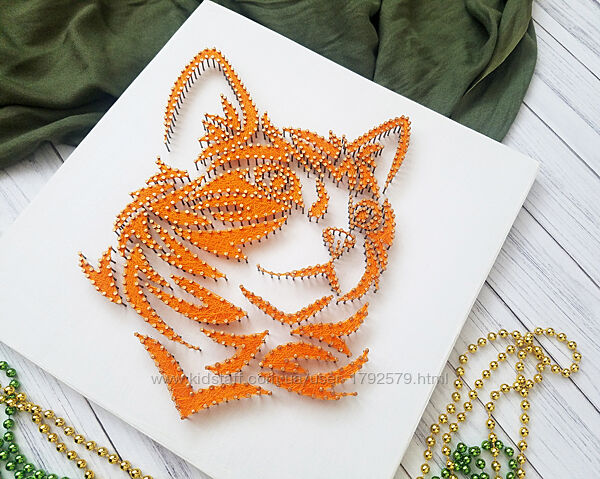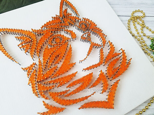 Подробное описание: Картина рыжий кот, стринг арт, подарок кот, золотой арт, белый декор