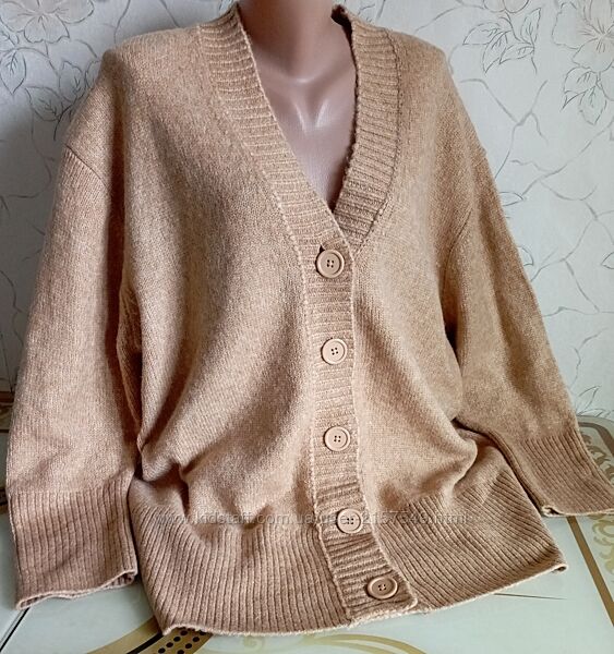 М´якенький , тепленький , базовий кардиган оверсайз , плечі спущені -вільно , ПІГ 62-66 , ПІТ 60-64 , рукав від горловини 74 , довжина виробу 73 . Стан ідеальний .Товар поверненню не підлягає .