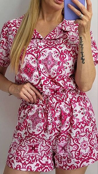181/24 Софтова піжамка в стильному принті. Ідеальна літня піжама у стильний