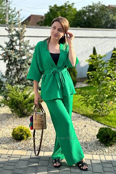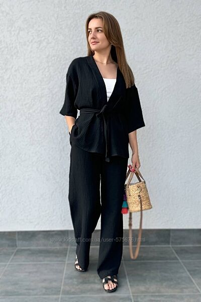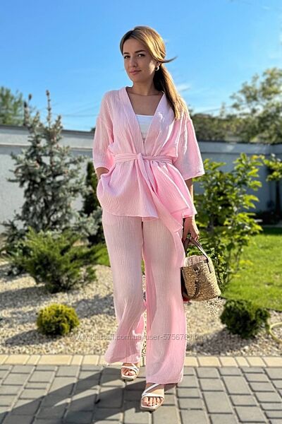 Костюм кофта вільного прямого крою, штани посадка середня, з кишенями, вільного крою. Пояс йде окремо, не пришитий