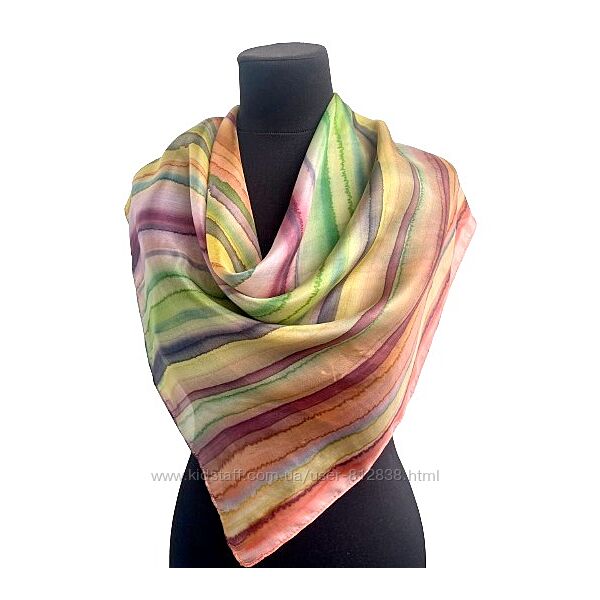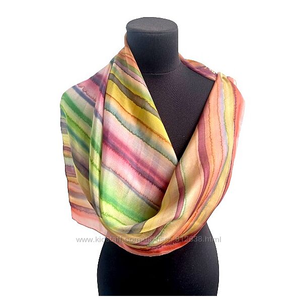 Подробное описание: Ручний розпис шовкова хустка Смужка, натуральний шовк.