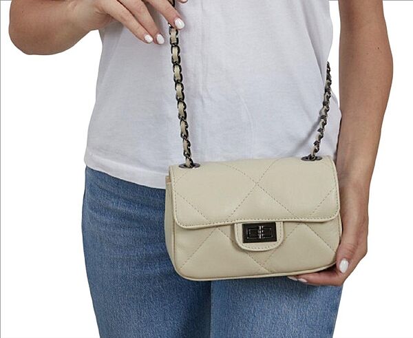 Подробное описание: Сумка Италия кожаная на цепочке светлая через плечо кросс-боди 7057WB