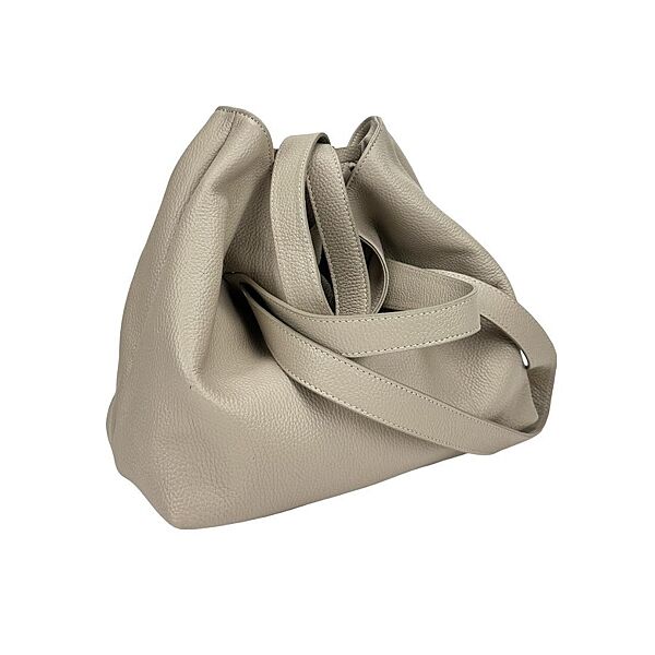 Женская итальянская кожаная большая сумка А4, сумка тоут, шопер с одной ручкой на плечо, изготовлена из мягкой фактурной натуральной кожи в бежево-сером цвете. Особенность: четыре ручки разной длины.Сумку можно носить в руках или на плече.