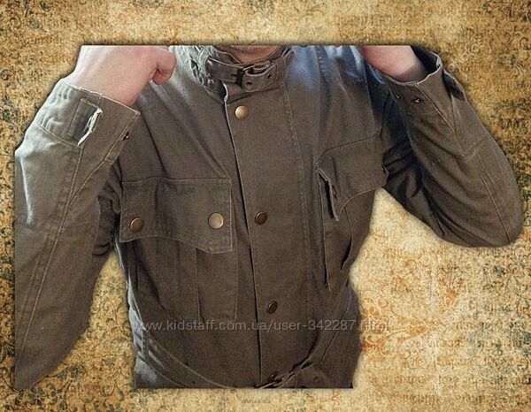 Размер евро 52 - 54. На рост 182 - 190см. Германия .Новая(бирка стик). 100% натуральный плотный не убиваемый коттон. Крутого винтажного коричнево серого подваренного цвета. Внутри не утеплённая коттоновая подкладка. Возможна установка съемных протекторов локтей, плеч и спины. Классического удлинённого байк фасона. Металлические молния кнопки пряжки. Качественный пошив. Брендовый производитель.ДЛИНА ПО СПИНЕ ОТ ВОРОТА - 83см