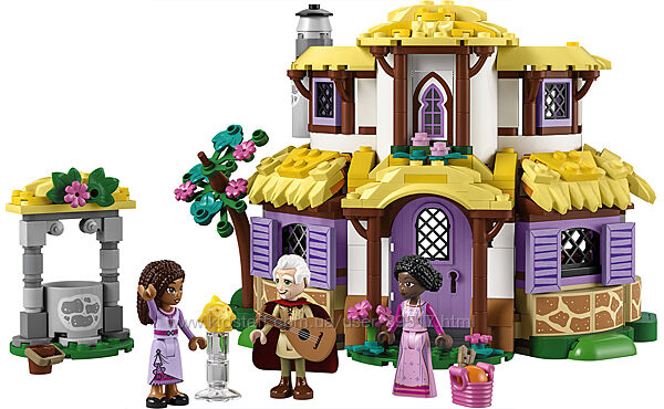 Завітайте до Аші додому! Деталізований набір LEGO ǀ Disney — запрошення до будинку Аші в Гемлеті, де вона живе разом із мамою та дідусем. Заходьте до круглого двоповерхового будинку й починайте досліджувати. Погрійтеся біля каміна, переглядаючи блокнот Аші. Придивіться до торта зі смайликом, який чекає на слушну нагоду. Потім вирушайте нагору до спальні, щоб відпочити, або на вулицю — до колодязя бажань. І загадайте бажання!Вік: 7+
