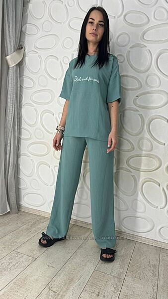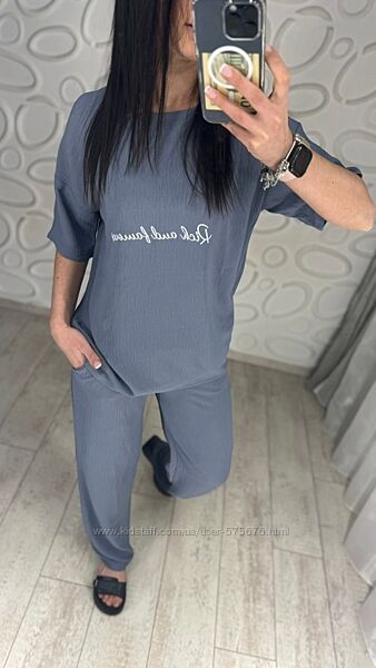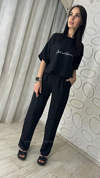 Подробное описание: 42-44, 46-48, 50-52 Костюм брючки та футболка американский креп