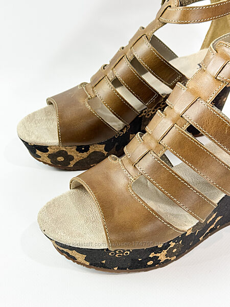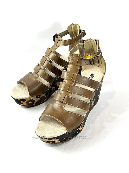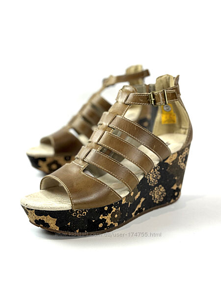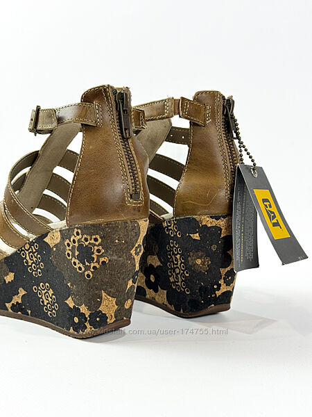 Оригінальні босоніжки-гладіатори американського бренда Cat. Зручна висока пробкова танкетка у квітковий принт.7.5US 37.5 розмір - 24.5 см по устілці. 8 см ширина.