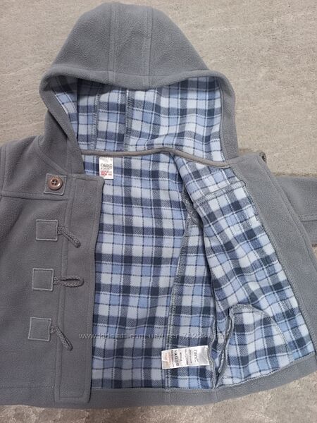12-18 міс., 86 см Хлопчику і дівчинці Колір світліший, ніж на фото, світло-сірий. Товстий, теплий фліс. Швидко сохне, не мнеться. Трохи потерті ґудзики.