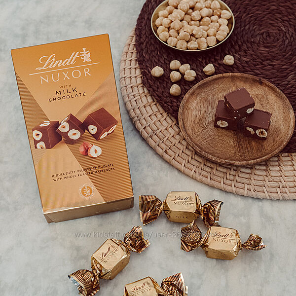 Подаруйте собі унікальний і розкішний досвід з новим LINDT Nuxor.Елегантне поєднання вершкового шоколаду LINDT з фундуком і хрустких цілих смажених лісових горіхів, ці шедеври, які тануть у роті, обов’язково будуть на вершині кожного списку бажань цього року. Відкрийте для себе новий Nuxor в молочному та темному варіанті