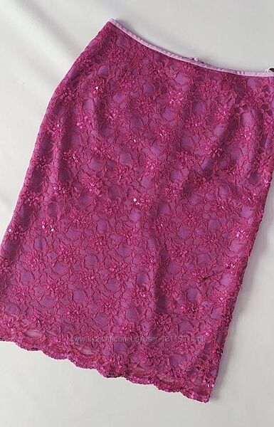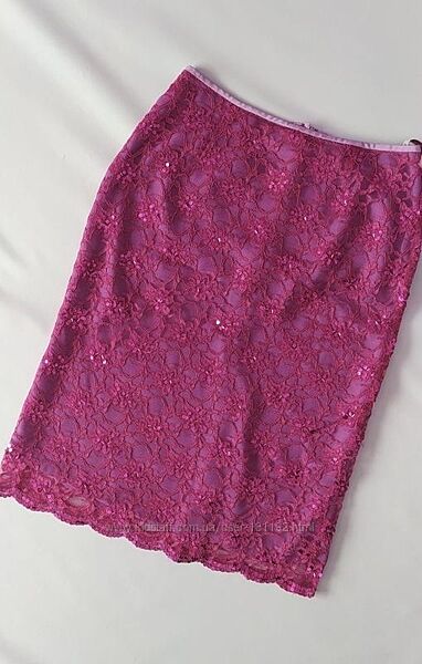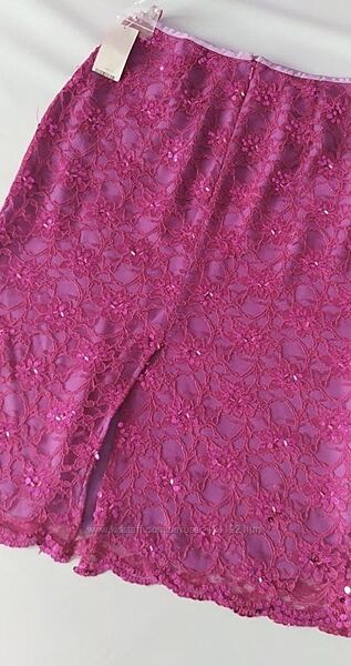 Пропоную ошатну гіпюрову спідницю. Розшита паєтками. Колір фуксія. На підкладці Кілька паєток відпали,але є запасні пару штук Нова з бірками Розмір вказаний 12 Довжина 68-69 см НОТ 37 см НОБ 49 см За складом 70% віскоза,30% поліамід, Підкладка-поліестер З вигляду-верх гіпюр,підкладка-шифон(не просвічується) ФОТО НА ЛЮДИНІ АБО МАНЕКЕНІ НЕМАЄ МОЖЛИВОСТІ ЗРОБИТИ З задоволенням відповім на всі ваші запитання і зроблю додаткові фото