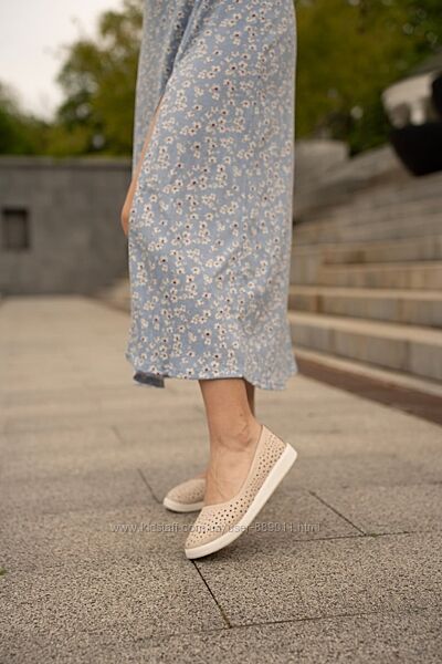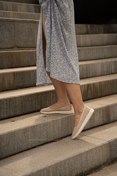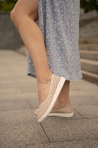 Балетки жіночі шкіряні з перфорацією, бежеві