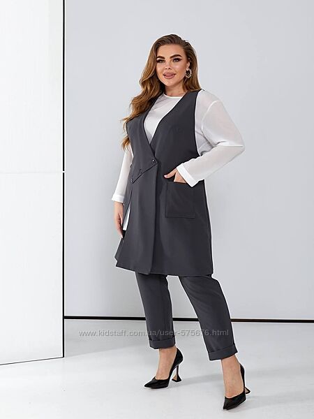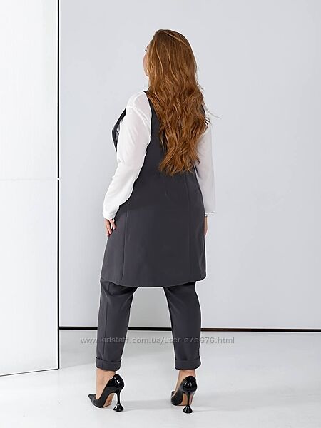Подробное описание: 50-52, 54-56, 58-60, 62-64 Костюм трійка жилет, блуза, штани