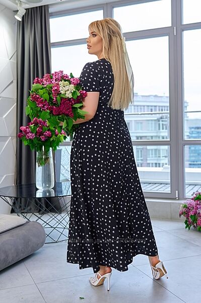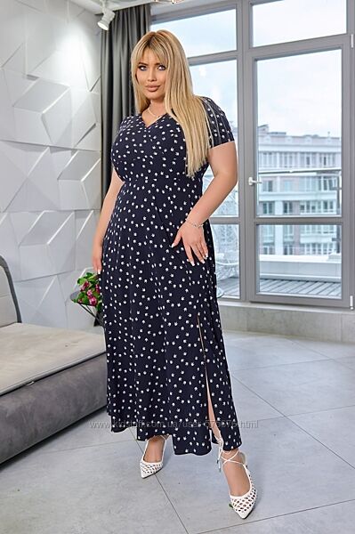 р.48 до 62р. Сукня максі з розрізом софт принт