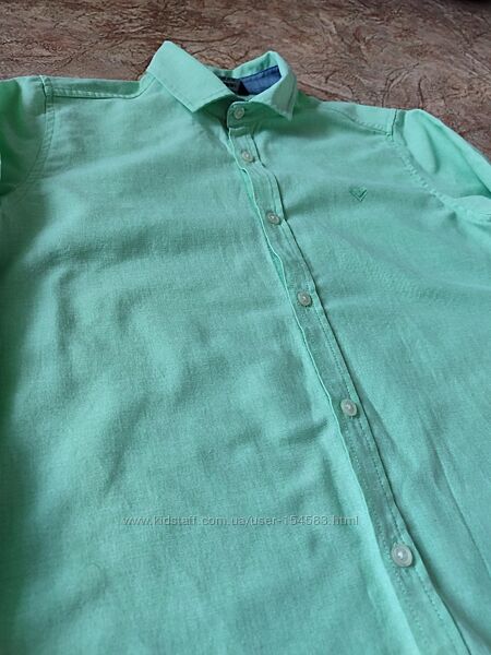 Рубашка LC Waikiki для хлопчика 11-12 років р.146-152 в новому стані. Дуже красивого світло-зеленого кольору ( 2 фото реальний колір). 100% бавовна.Заміри: довжина 66см, ширина під руками 47см, плечі 39см, рукав від плеча 60см.