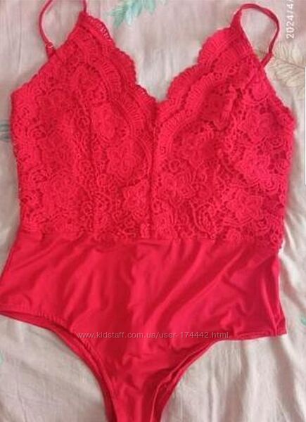 Шикарний фірмовий боді Boohoo р.54-56. Длвжи на-80см, ПОГ-58-60см, прикрашено гарним кружевом у відмінному стані.95%поліестер 5%еластан . Сзаду застібається на потайну молнию.