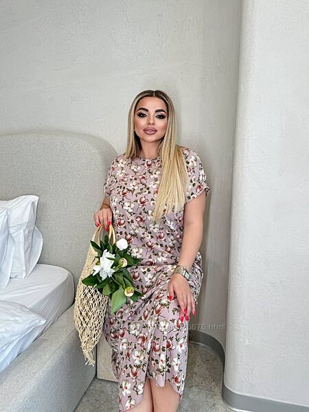Подробное описание: 50-52, 54-56, 58-60 Довга сукня вільного стилю софт принт