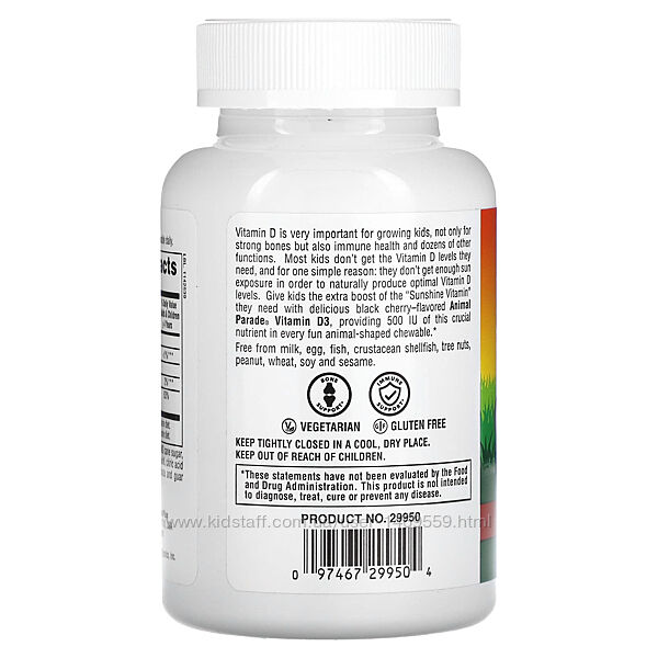Подробное описание: NaturesPlus Source of life animal parade вітамін D3 смак чорної вишні 500 М