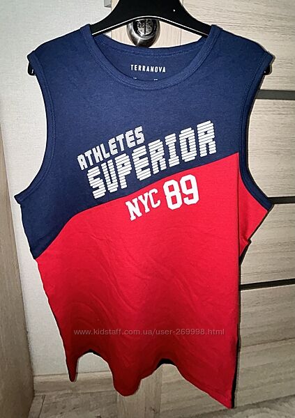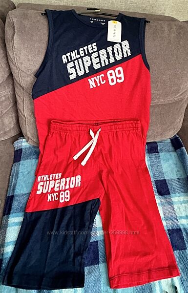 Комплект (футболка+шорти) Terranova, новий. Склад 100% хлопок. Розмір вказаний 165 см, 14 років. Заміри майки: ширина під рукавами 46 см, довжина 63 см; шорти: пояс 35 см, довжина по боковому шву 53 см.Ціна 300 грн
