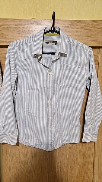 Сорочки Sela. Розмір 11. Склад - бавовна. Оданкові тільки різного кольору - з блакитною та бежевою смужкою. Стан гарний. На рукавах є гудзик для підкатуЗаміри:
