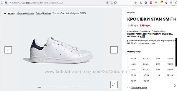 Подробное описание: Кеди Adidas Stan Smith J - шкіра білі