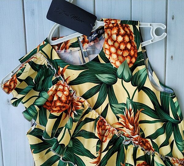 Красивое летнее женское платье "Милка" в экзотический принт ананасы от украинского производителя качественной женской одежды O`Zona Milano.Ткань: стрейч коттон