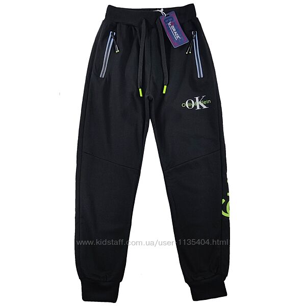 ПРОМІРІ СТОЯТЬ ПО ВІРОБУ, А НЕ ДІТИНИ. ВРАХОВУЙТЕ ЦЕ ПРИ ВИБОРІ РОЗМІРУ.Штани спортивні для хлопчиків без утеплення. Модель сезону весна-осінь від виробника GRACE. Силует прямий з манжетами внизу. Посадка середня, зручна. На поясі м´яка і комфортна гумка. З боків прорізні кишені. Пояс продубльований шнурком. Сучасні брюки для фізкультури і на кожен день. Великий вибір підліткового одягу для хлопчиків