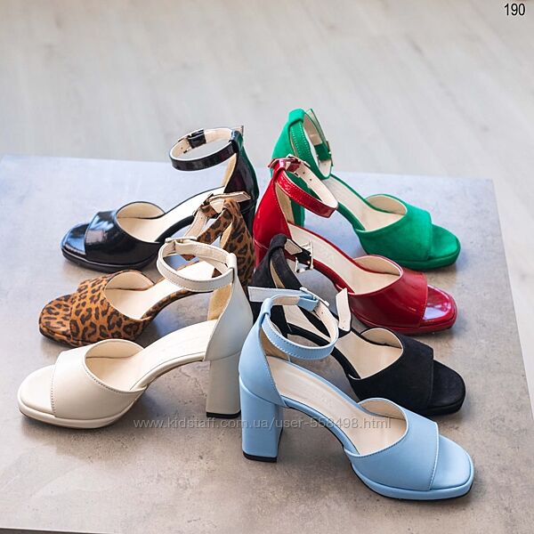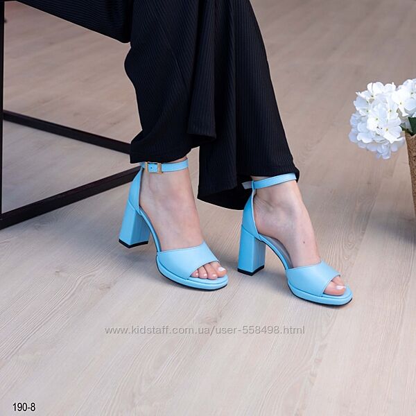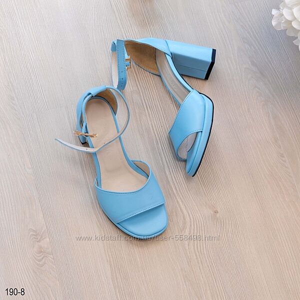 Подробное описание: Блакитні жіночі шкіряні босоніжки на каблуці