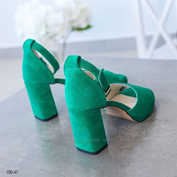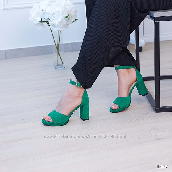 Подробное описание: Замшеві зелені жіночі босоніжки на підборах із замші