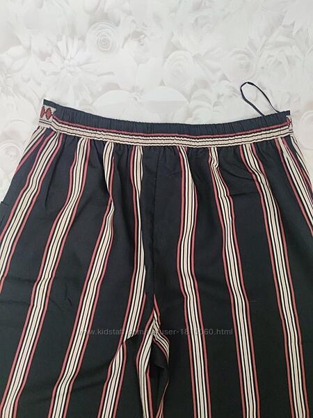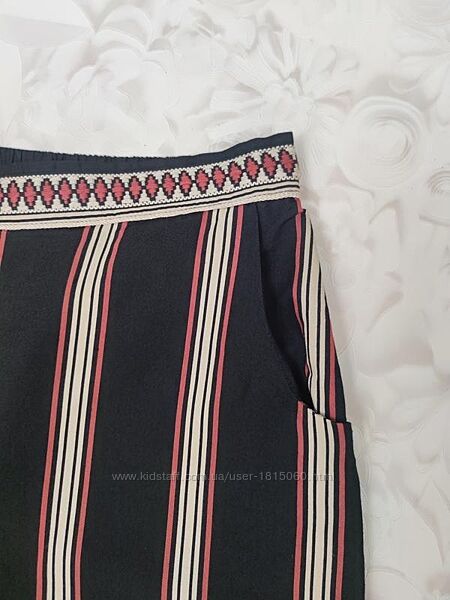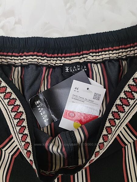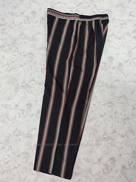 Стильные красивые брюки в полоску с вышивкой по поясу из премиальной коллекции Canda. Сзади пояс на резинке, боковые карманы, удобная посадка.Качество - супер: 88% шелковистая вискоза и 12% полиамид. К телу очень приятные!!!