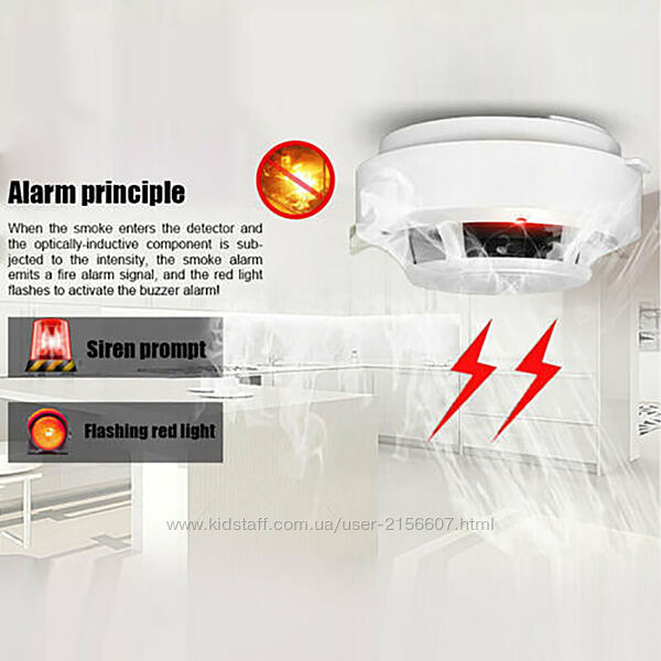 Независимый детектор дыма,пожара- помогающий обнаружить возгорание на ранней стадии, обеспечить безопасность вашей семьи.Когда дым достигает определенной плотности, он немедленно и своевременно
