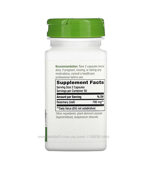 # Nature´s Way, лист розмарину, 700 мг, 100 капсулОПИС: