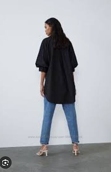 Подробное описание: Черная рубашка оверсайз с обьемными рукавами Zara коттон