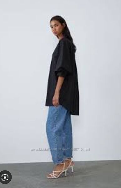 Удлиненная черная рубашка оверсайз с приспущенными рукавами Zara 100% коттон