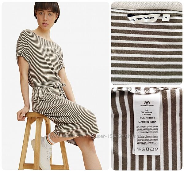 Подробное описание: Сукня літня у смужку білого кольору хакі р.46-48-50 віскоза Tom Tailor