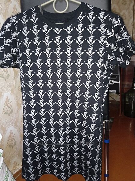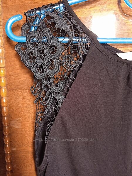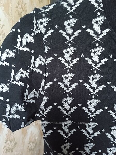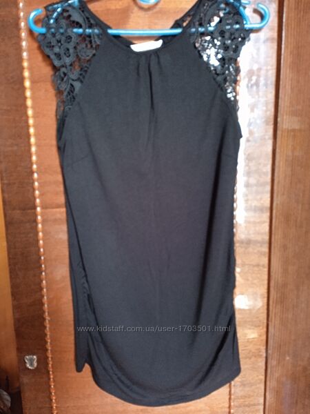 1. H&M черная с кружевом.Новая.Плечи 33, под мышками 38, длина по заду от горловины 57. Перед присобран внизу и длиннее зада. Тонкая,немного тянется.2. Футболка от бренда - Famous Stars And Straps, черная с серебристым рисунком.Плечи 33, под мышками 39, длина 63, ширина внизу 42.В идеале. Немного как стрейч. Стоит М, но не пойдет.В идеале. -- 39 грн