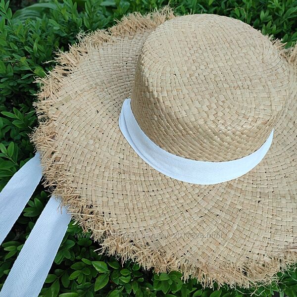 Літній солом´яний капелюх з широкими полями та довгою стрічкою.Стрічка чорна або біла на вибір.