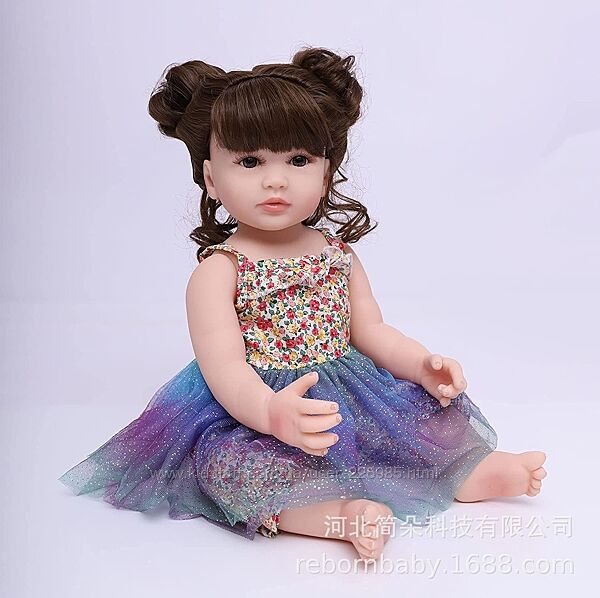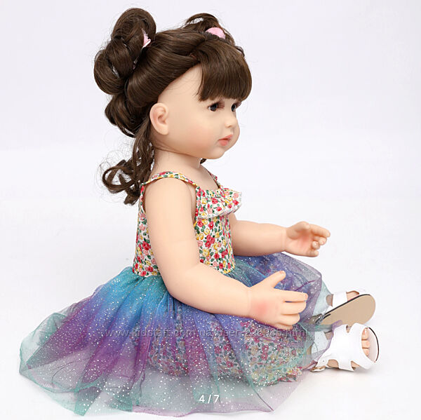 · Лялька розмальована вручну акриловими фарбами. · Тіловініл-силіконове, її можнакупати.Руки, ноги і голова з якісного м´якого силікону.· Ручки і ніжки рухливі,лялька може сидіти і лежати. · Очі виготовлені з акрилу (не закриваються). На повіках пухнасті вії. · Довге пишне волосся ідентичне натуральним, можнарозчісувати. Головку можна повертати у різні боки.· Лялечка одягнена в нарядний сарафан та штанці. На голові заколки.· Соскана магнніті, пляшка, памперс та ковдра в комплекті.· Свідоцтвопро народження пусте (можна вписати будь-яке ім´я). Характеристики:Вага: 1,6 кг
