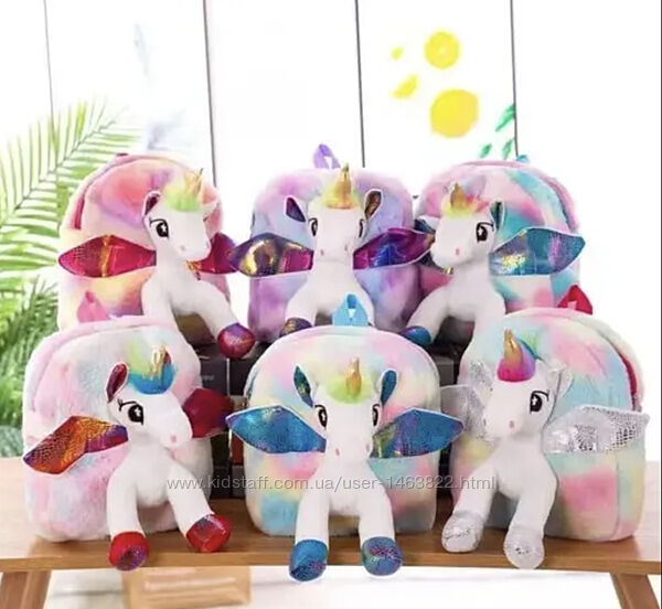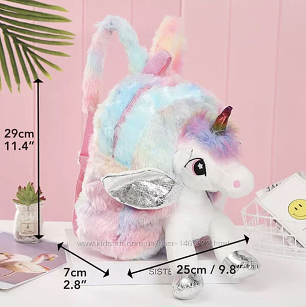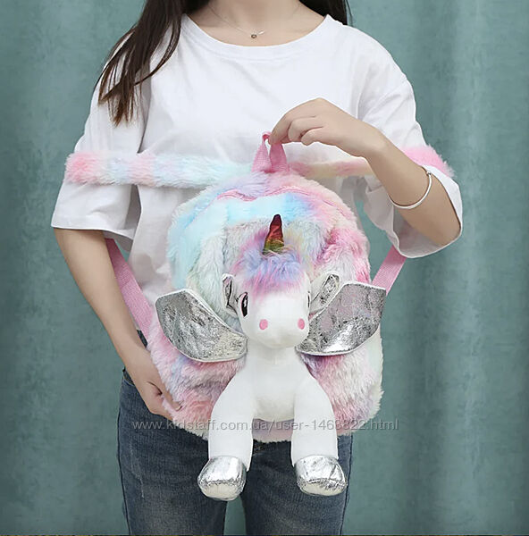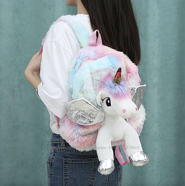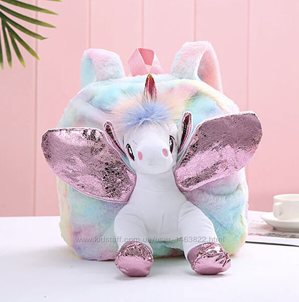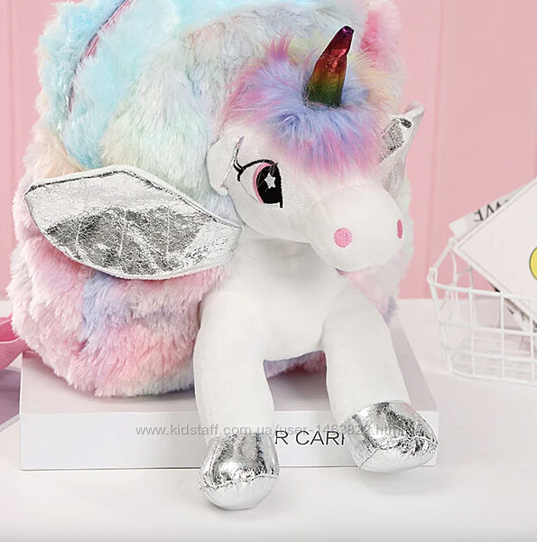 Мякий плюшевий рюкзак з хутра Єдинорог для дітей