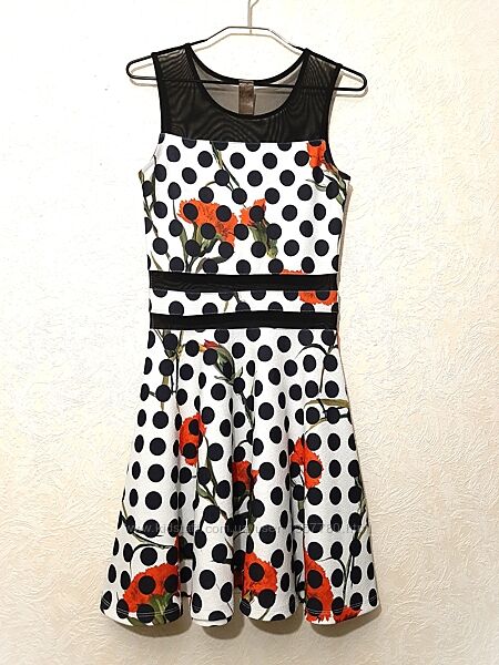 Подробное описание: Zarga красива літня сукня біла в чорні горохи/червоні квіти гвоздики жіноча