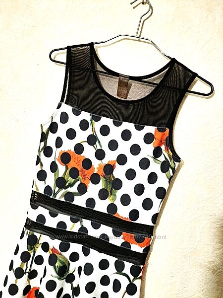 Красиві літні біле плаття в чорні горохи/червоні квіти гвоздики, без рукавів, повсякденне/ошатне.Бренд Zarga, Туреччина. Поліестер, креповий трикотаж, відмінна якість.