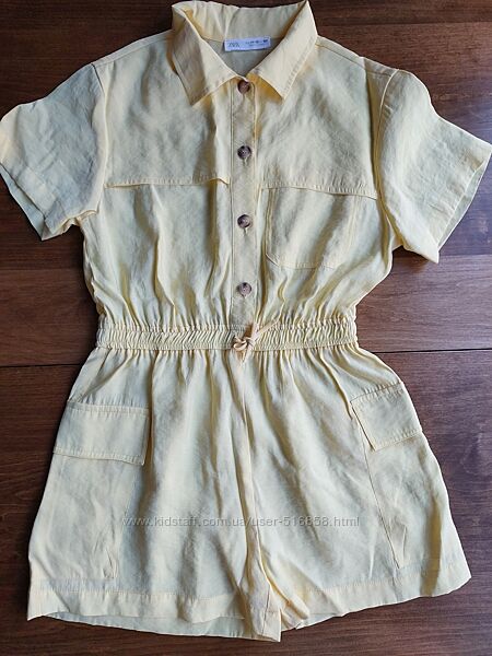 Zara комбинезон,р.152. Куплен на официальном сайте. Абсолютно новый- не подошел размер. Лучше от 140 до 150 на рост. Цвет более насыщенный, чем на фото. Ткань очень легкая и приятная. Застегивается на пуговицы, на талии - резинка. На шортах по бокам 2 кармана. Стильный и модный. Сидит свободно.Замеры:
