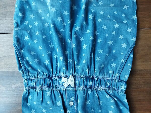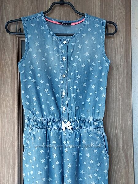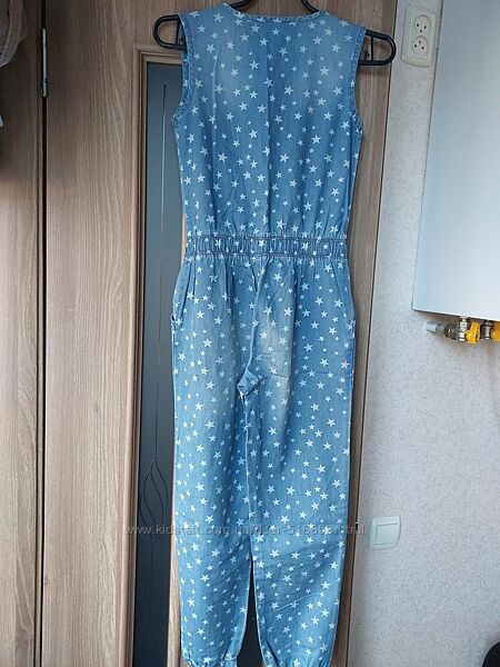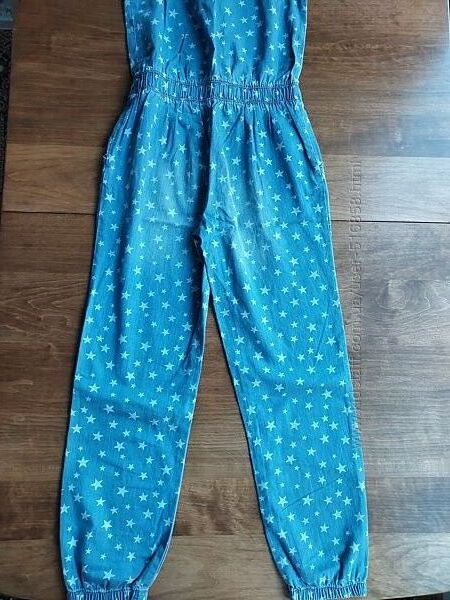 Продам George комбинезон,р.140. Куплен на официальном сайте. Купила на весну дочке , но началась война. Выехали и оставили часть вещей. Сейчас вернулись - мал. Абсолютно новый. Бирки сняли. Собирались носить. Джинс облегченный, легкий. Очень приятный на лето. Впереди застегивается на пуговицы. На талии вшита резинка. Внизу штанин тоже резинка. Есть 2 кармана по бокам. Стильный и удобный. Украшен рисунком в виде звезд.Замеры: