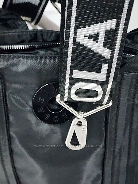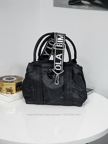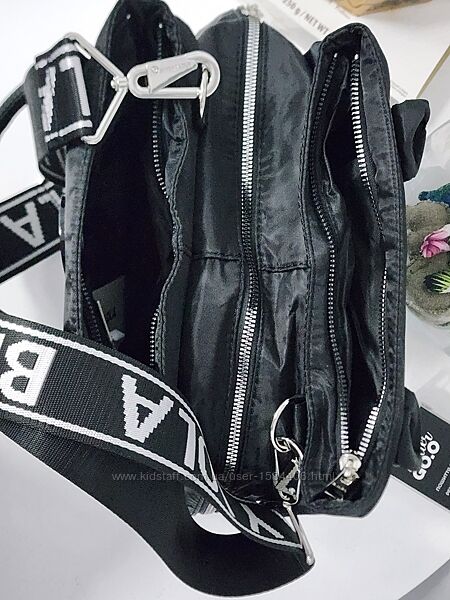 Нейлонова сумка чорного кольору Bimba y Lola має три відділення, коротки ручки + додатковий ремінь на плече довжина регулюється.Довжина 27 см