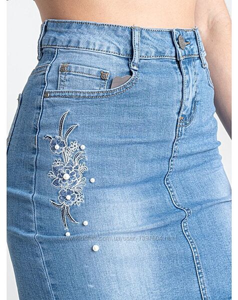 Спідниця X&D 917-5 блакитна стрейчева з вишивкоюТканина тягнеться дуже добре